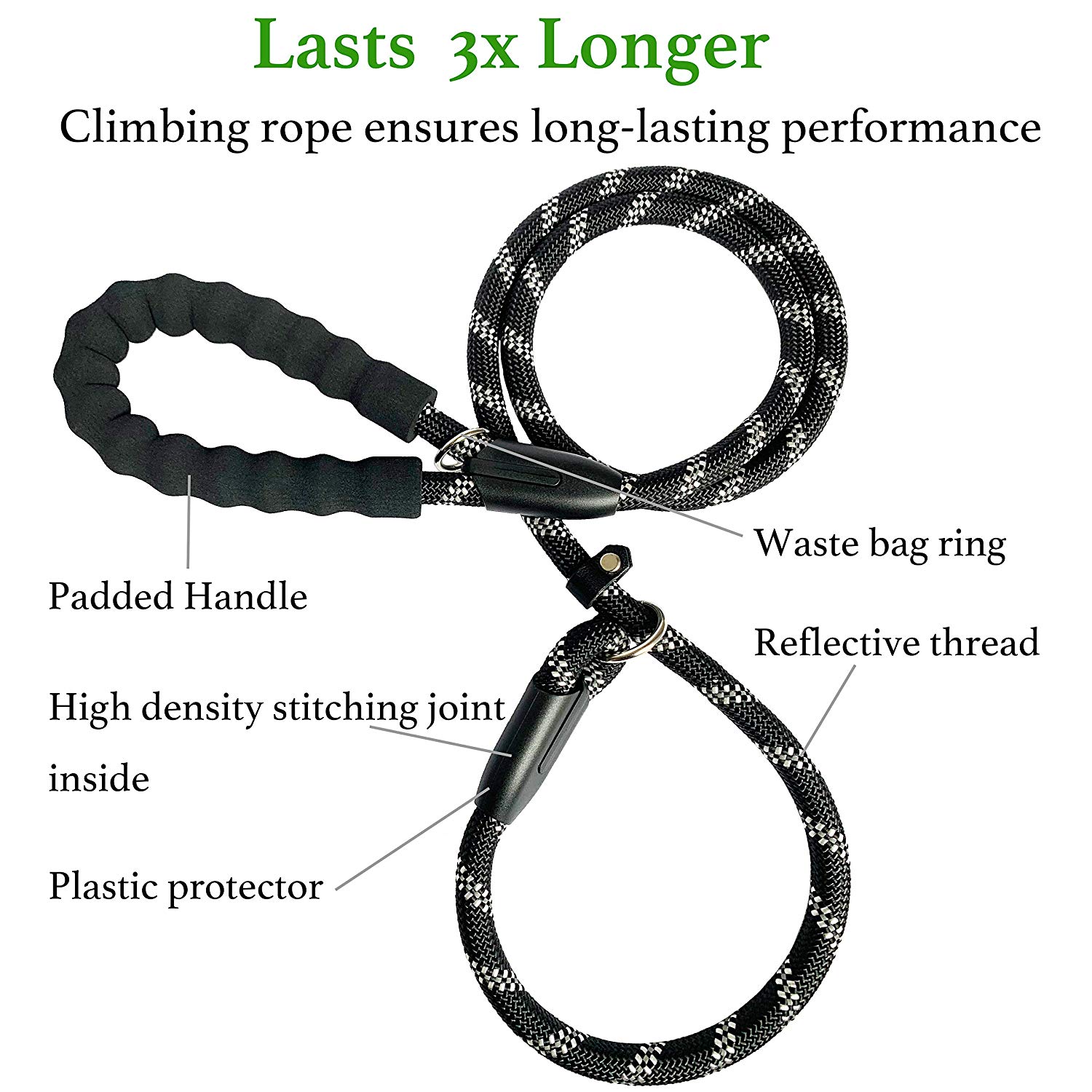 6FT Extremely Durable Slip Dog Rope Training Leash with Comfortable Padded Handle and Highly Reflective Threads Quality